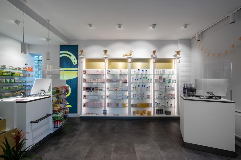 Der stilvolle Umbau oder Neubau einer Apotheke erfordert besondere Kenntnisse über Strukturen, Arbeitsweise oder gesetzlicher Rahmenbedingungen. Gemeinsam mit Ihnen verwirklichen wir Ihre Vorstellungen einer "Traum-Apotheke". Perfekt in Design, Funktionalität und Wirtschaftlichkeit.